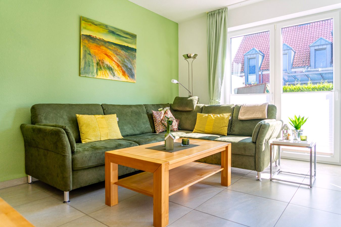 Die Ferienwohnung ist 65 qm groß und befindet sich im Erdgeschoss.
