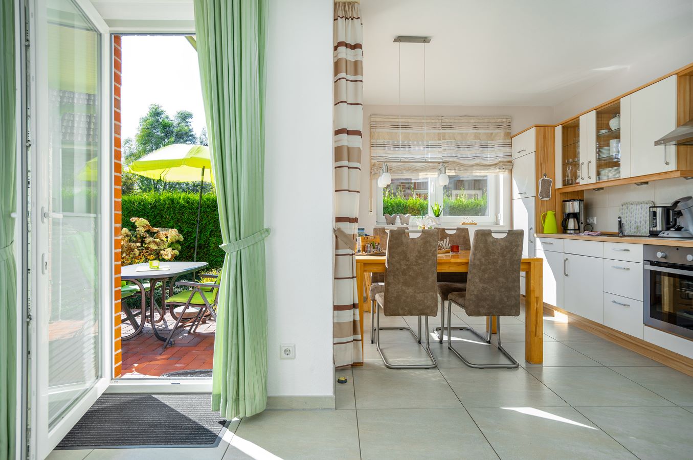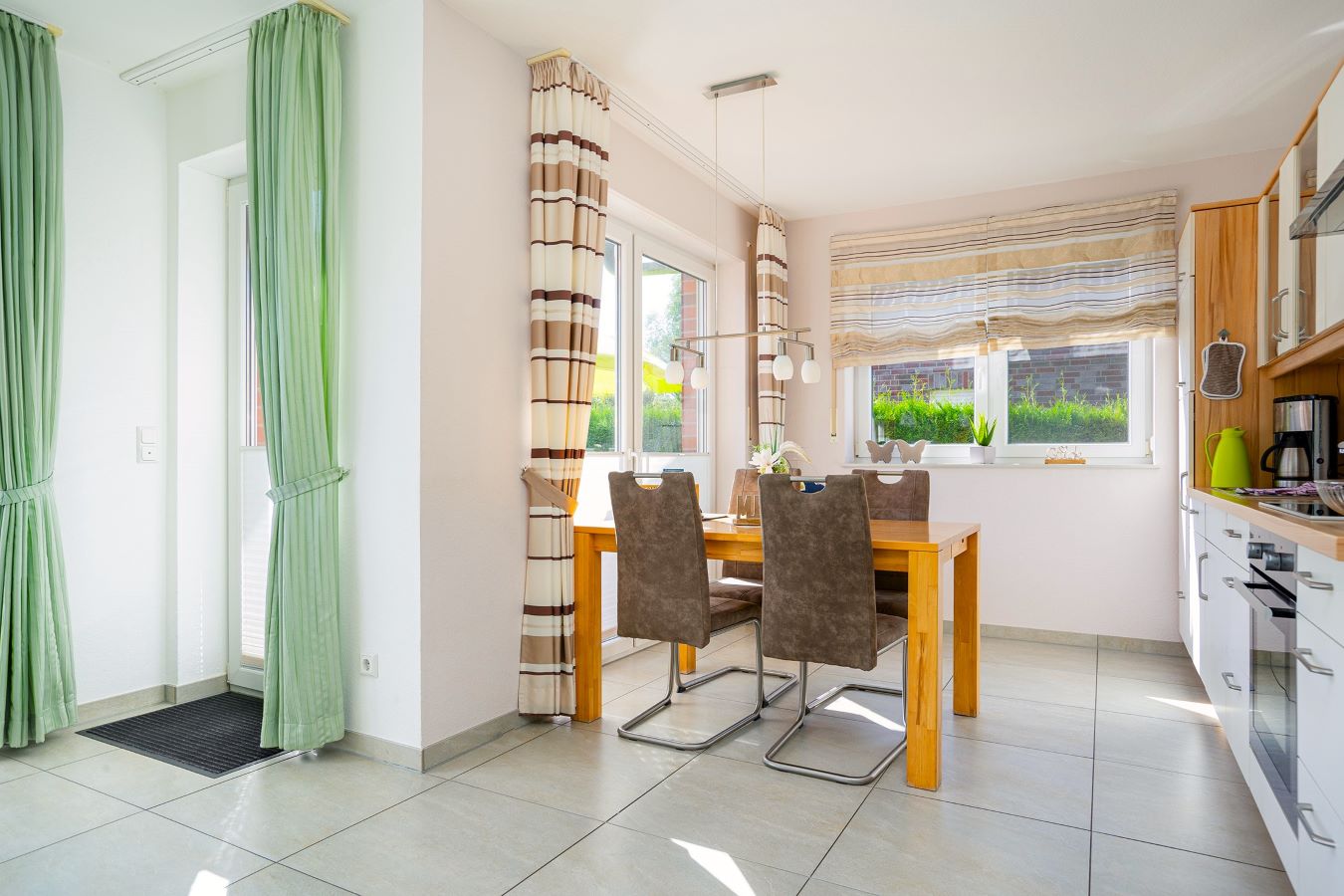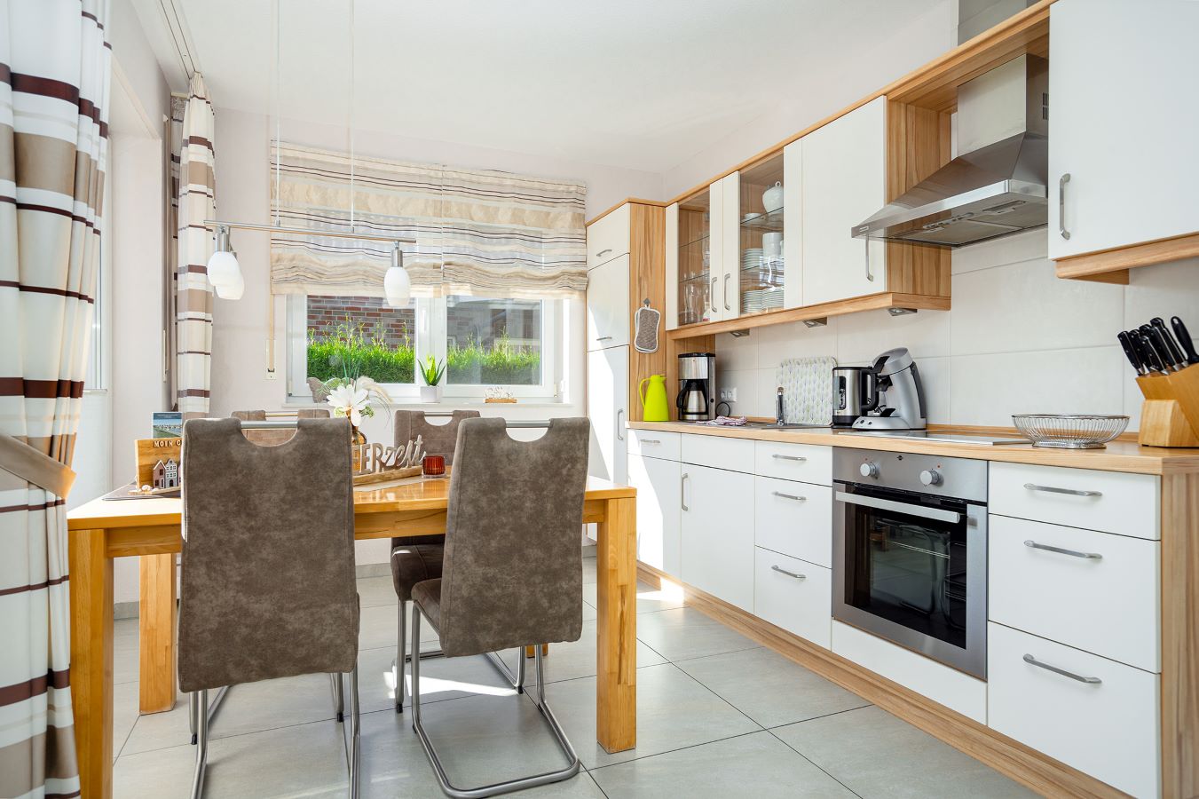 Sie finden einen Essbereich für 4 Personen und eine voll ausgestattete Küchenzeile vor.