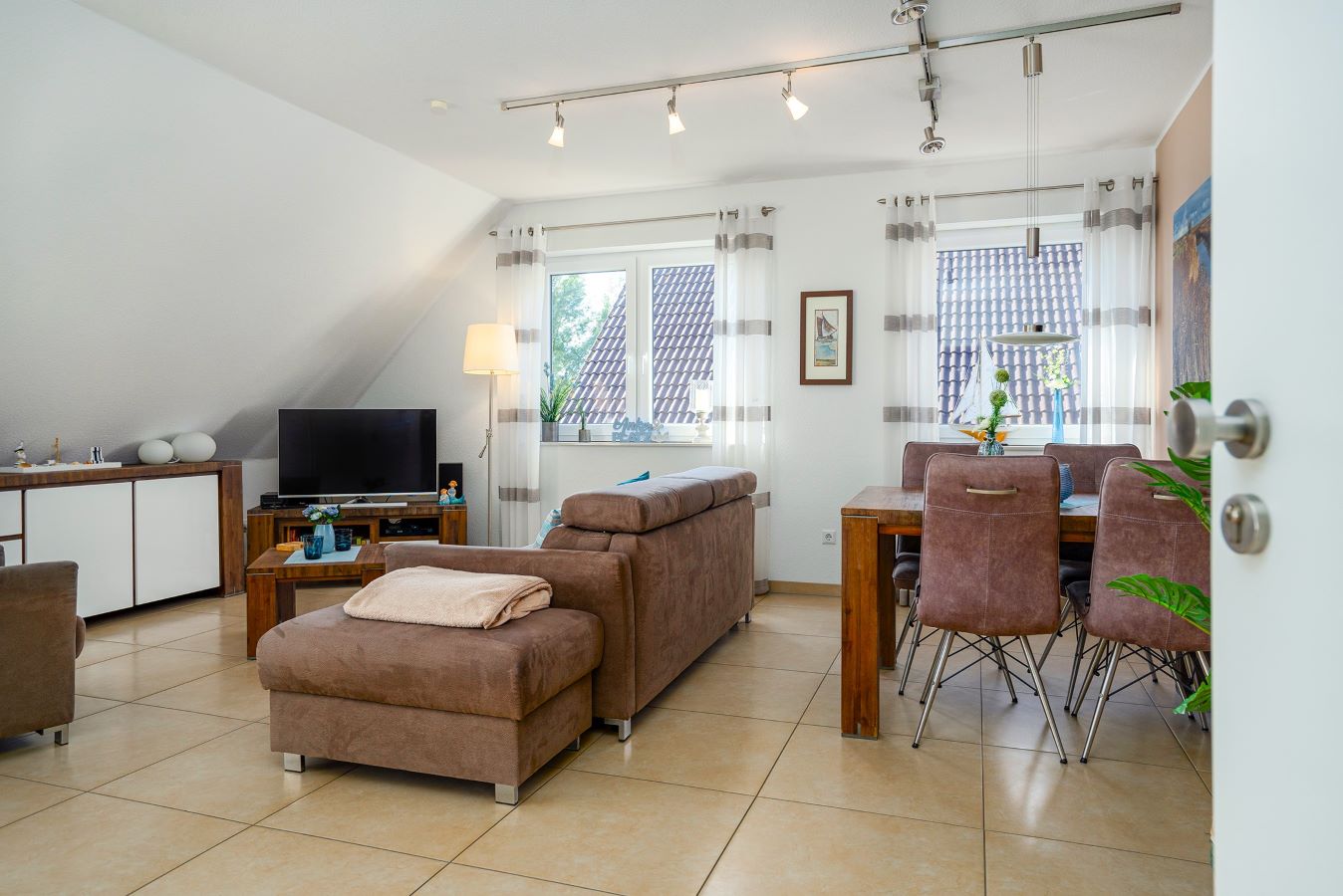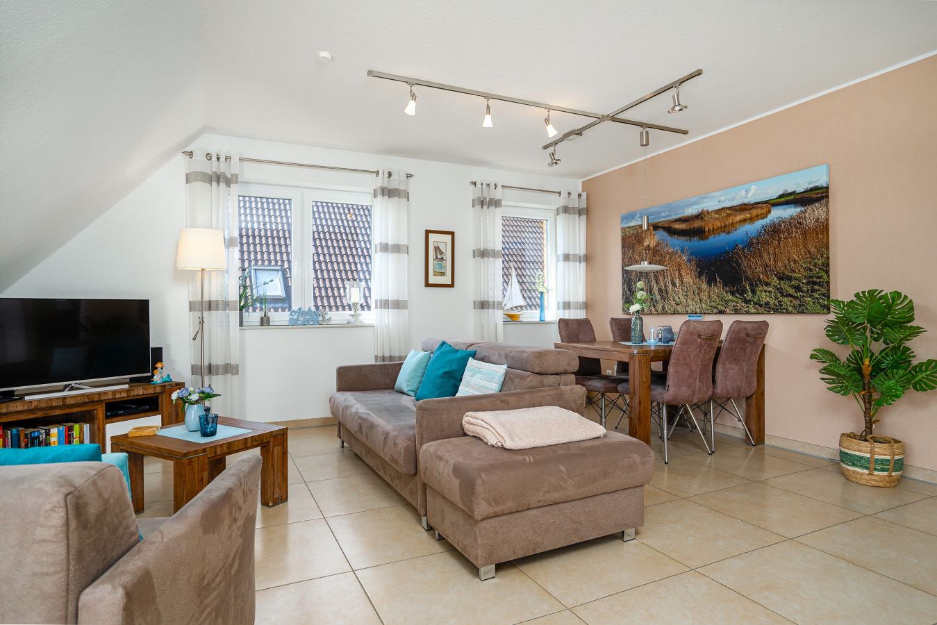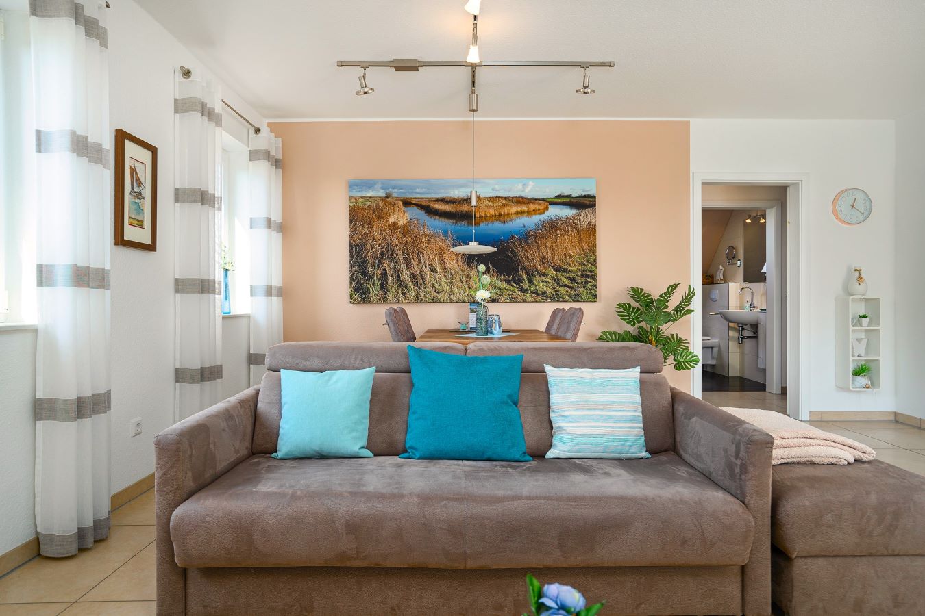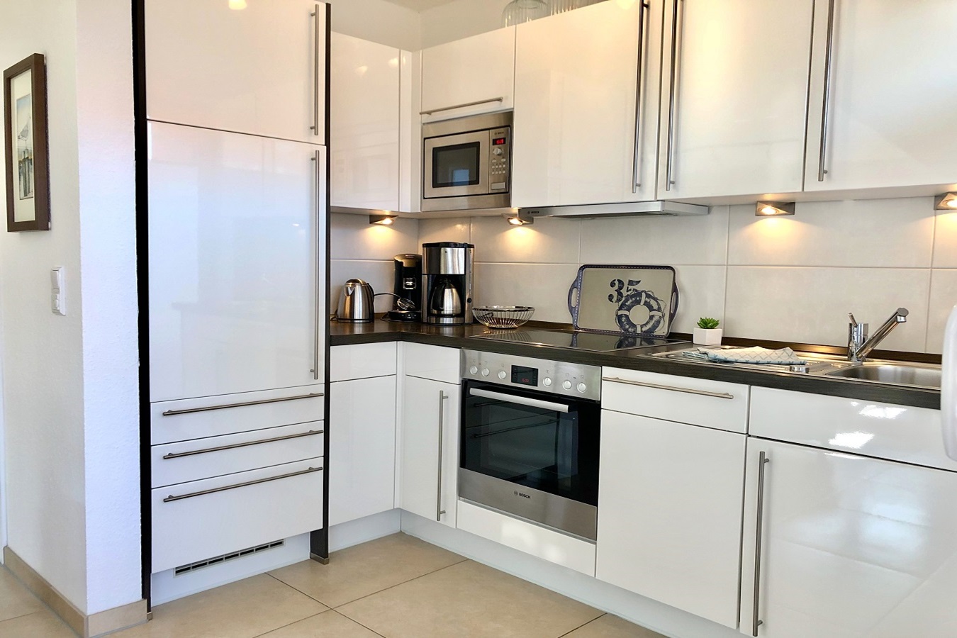 Willkommen in der Ferienwohnung Grachtentraum 3! Diese lichtdurchflutete und freundliche Unterkunft im ersten Obergeschoss bietet Ihnen den idealen Rückzugsort für einen entspannten Urlaub. Die gesamte Wohnung ist mit einer modernen Fußbodenheizung ausgestattet, die für ein angenehmes Raumklima sorgt, egal zu welcher Jahreszeit Sie anreisen. Der offene Wohnbereich besticht durch eine hochwertige Ausstattung, die keine Wünsche offenlässt. Stylische Möbel und geschmackvolle Dekoration schaffen eine einladende Atmosphäre, in der Sie sich sofort wohlfühlen werden. Die Küche ist mit modernen Geräten und allem notwendigen Kochzubehör ausgestattet, sodass Sie Ihre Lieblingsgerichte zubereiten können. Der große Esstisch lädt dazu ein, gesellige Abende zu verbringen. Das Schlafzimmer ist hell und gemütlich gestaltet, was für eine erholsame Nachtruhe sorgt. Hochwertige Bettwäsche und ruhige Farben tragen zur Entspannung bei. Das Badezimmer überzeugt ebenfalls mit modernem Design und erstklassigen Sanitäreinrichtungen. Hier können Sie nach einem aufregenden Tag wunderbar entspannen. Genießen Sie Ihren Aufenthalt in der Ferienwohnung Grachtentraum 3, wo modernes Wohnen auf höchste Qualität trifft. Erleben Sie unvergessliche Ferienmomente in dieser stilvollen Unterkunft!